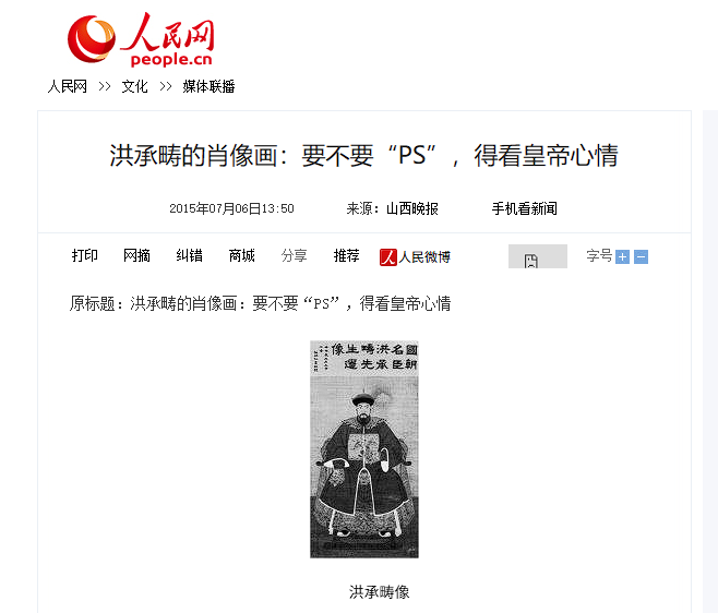 网上有人辟谣说,下图左边这个洪承畴是现代画作。