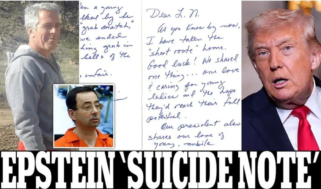 最讽刺的是一封信,据称是爱泼斯坦在自杀前,写给另一位着名性犯罪者的信。