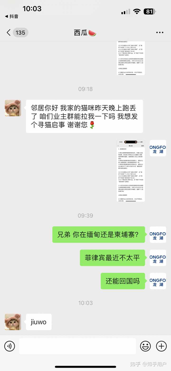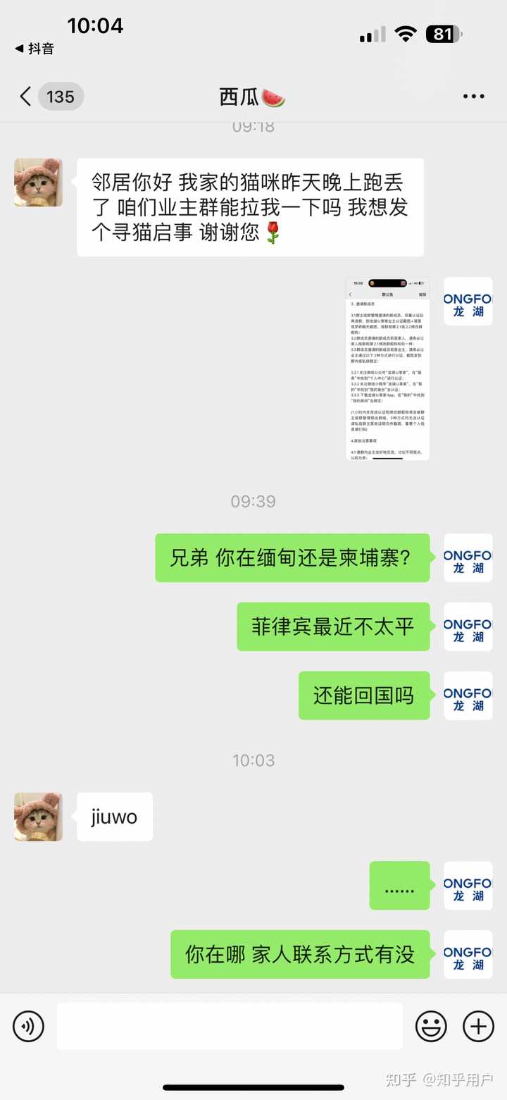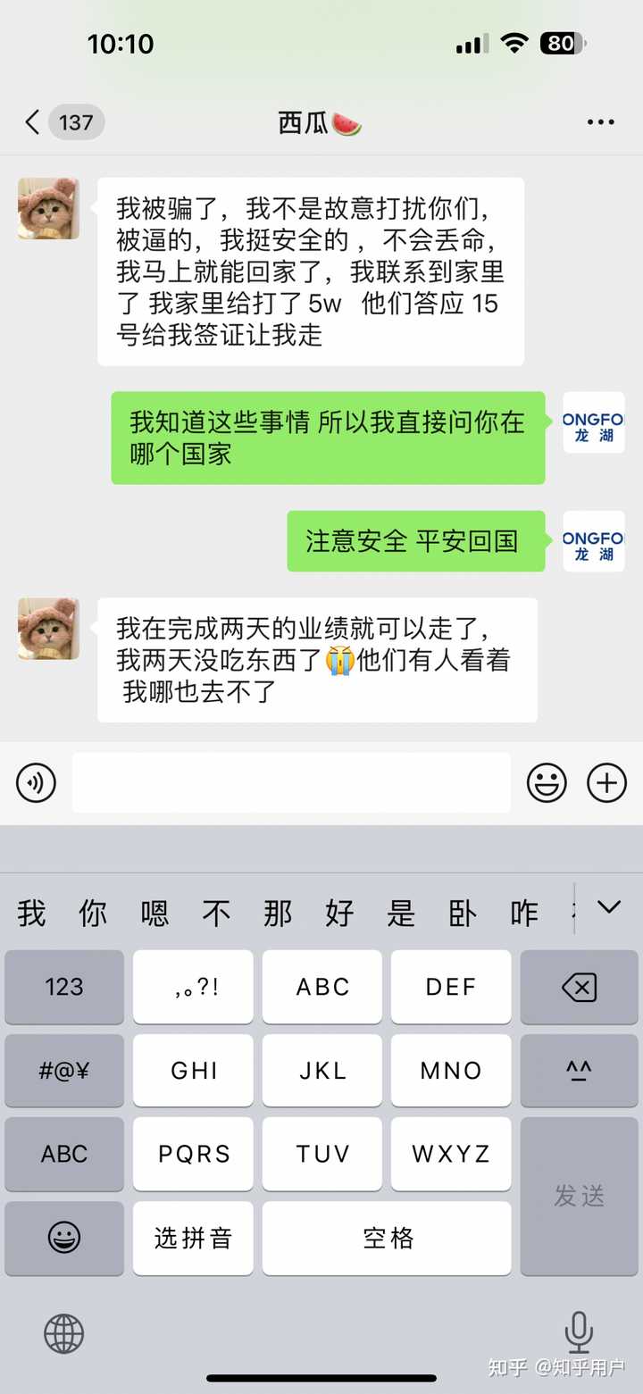 我没想到随手一个回答会有这么人评论,和担心这位小哥,这只是一个准备完成业绩的人被我拆穿了然后发到网上让大家看看,因为我在抖音也经常会看一些关于东南亚的视频,也了解一些,我只是发出来让大家警惕一下东南亚,去了以后真的是生不如死,这个小哥一看就是那种没有经验的人,我后期我也联系了,没有回复我,可能是回来了,可能已经天各一方了,有人说我真编的,我没那么无聊,我一天也挺忙的,再说一下他为什么可以在网上跟我说这些,因为他们的规定是只要不说地址和电话号码一般没人管,这个你们在抖音也能知道,不说了。
