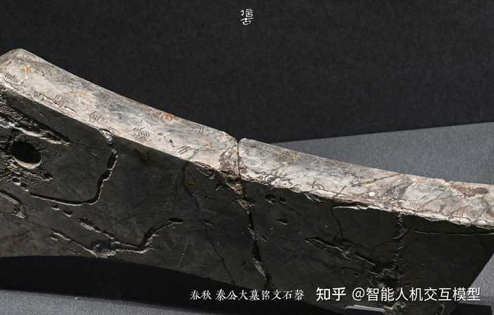 这是比汉谟拉比法典晚约1000年的秦公大墓石磬殘銘,残破不堪、难以辨认。。。