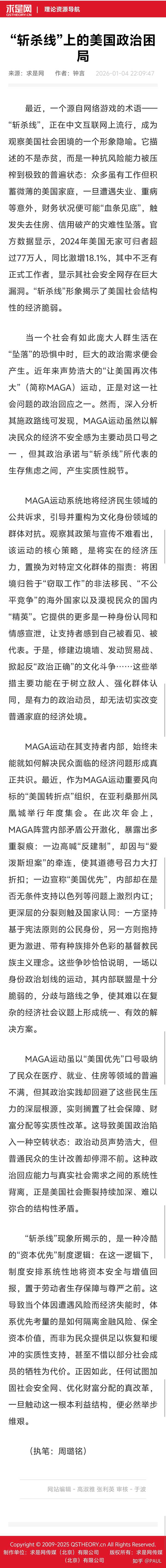 这下其实就能把圆脸说的那么多美国的乱象的根源说清楚了,这样才能真正让我们自己来思考如何避免犯和美利坚一样的错误。就好像《求是》对于「斩杀线」一文末尾所说的——美国的问题在于将资本的安全和价值凌驾在了老百姓的生命财产安全之上,甚至为了保障资本的安全和价值,把不利于资本的老百姓牺牲掉。