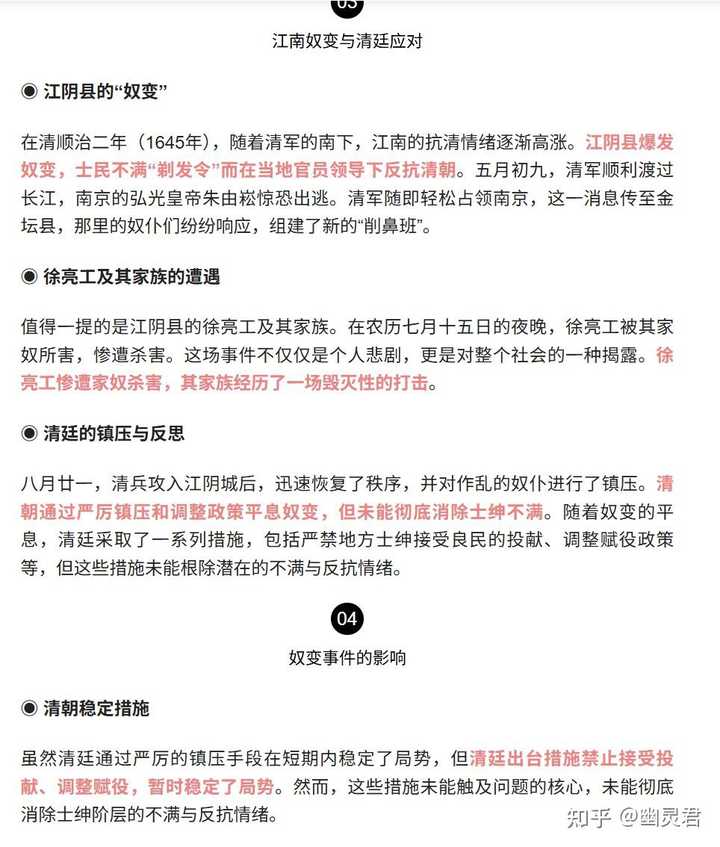 以徐霞客家族为例,1645年在江阴遭遇奴变,被杀害,徐霞客手稿被毁,那么问题就来了,江阴八十一日是否存在?江阴八十一如果存在,你原来的人跟没事一样?继续累积明朝时期的矛盾?然后引发奴变? 因此学界一直有另一个说法,徐霞客家族是死于清军之手,但这只是「另一个说法」「有争议」而不能说是事实,这就是编造奴变的巨大收益,最低也能争论到底是奴变还是清军干的,转移了注意力,混淆了事实