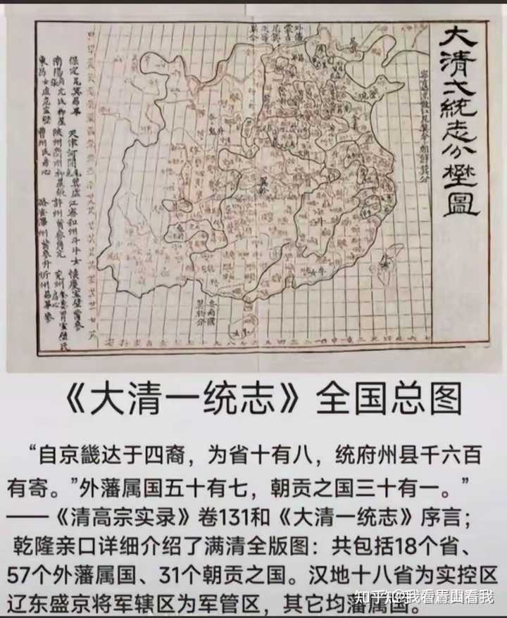 【共包括18个省、57个外藩属国、31个朝贡之国。汉地十八省为实控区,辽东盛京将军辖区为军管区,其它均藩属国。】