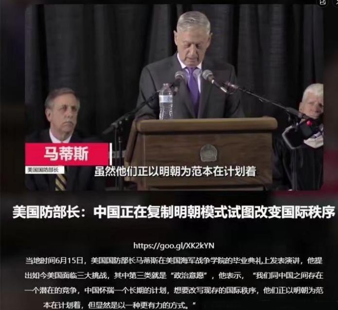 在这个机构的文章中,充满对明朝控制印度洋航路的崇拜。海外海军基地、对境外国家政权更替的操控、控制海上贸易、不寻求领土控制而是航路控制,都是当年大明朝操作过的。大明对这些国家有额外控制力。这种模式成了美国学习的榜样。