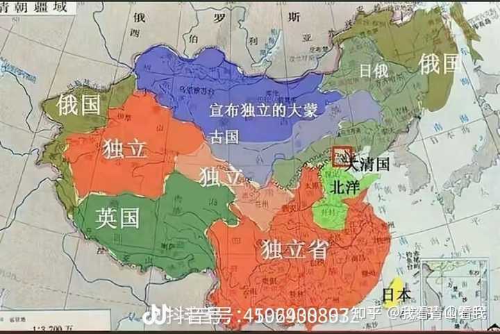 这是1840年鸦片战争之后,清朝的疆域时局图: