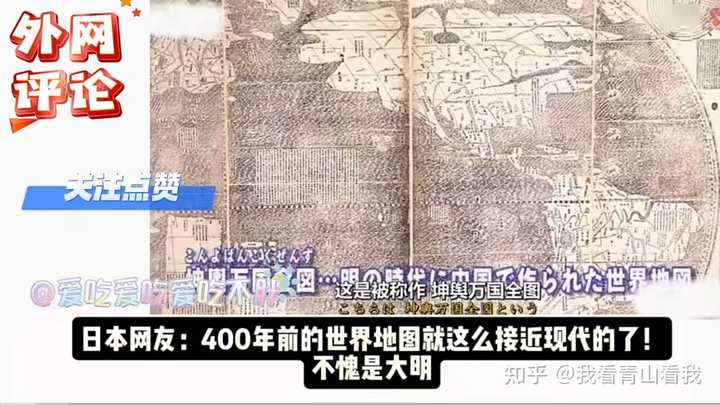 日本电视台播放、讲解大明朝郑和船队测绘的第一份世界地图:《坤舆万国全图》