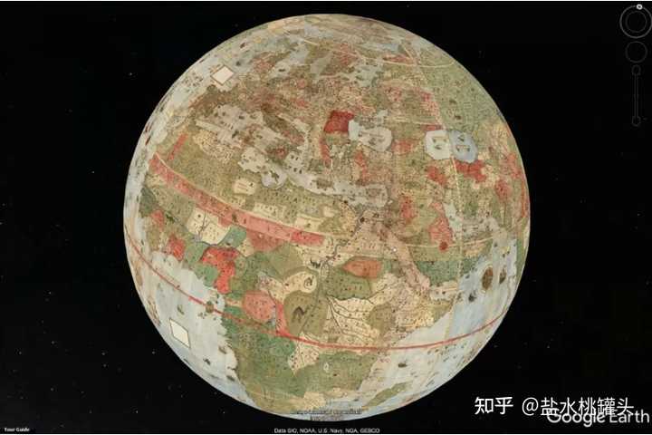 经过数字化处理,它被转换为圆柱投影并导入谷歌地球,让现代人可以一窥当年的世界风貌。