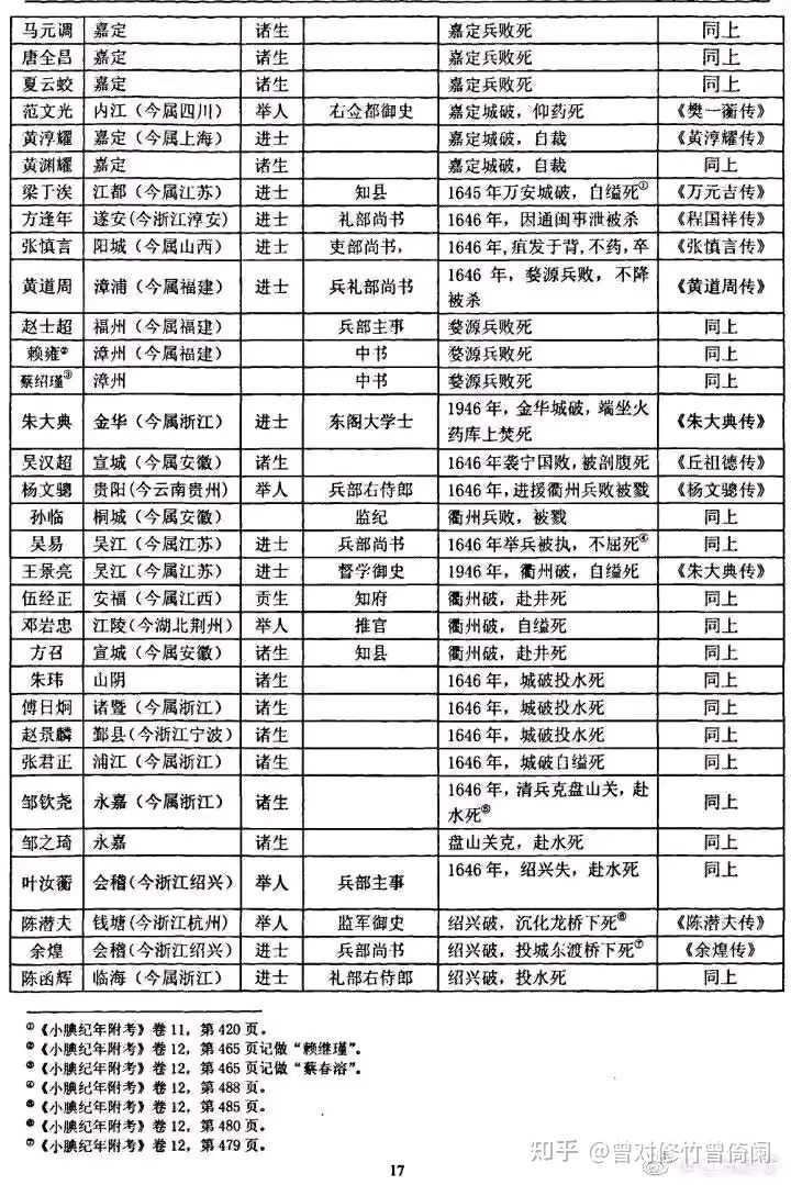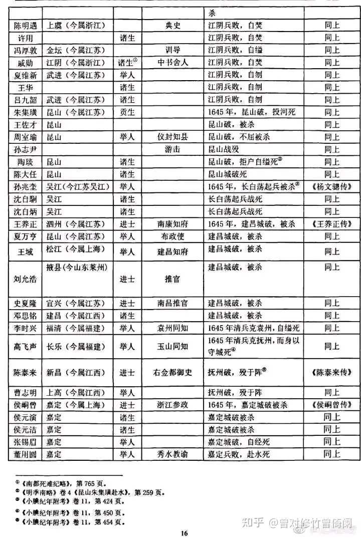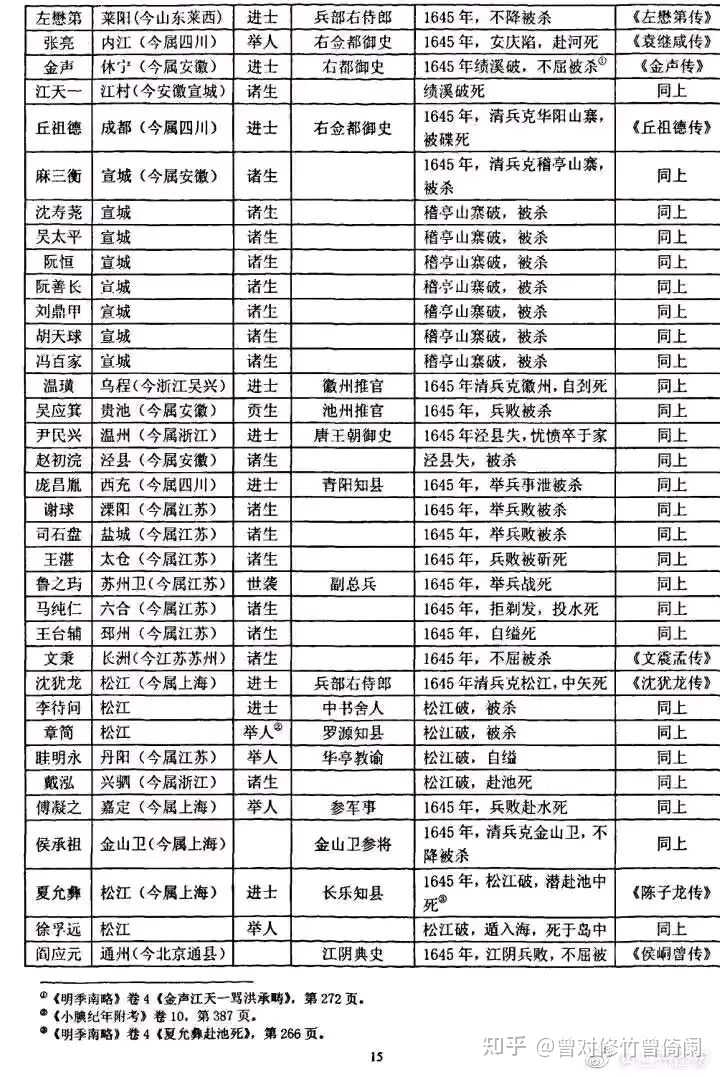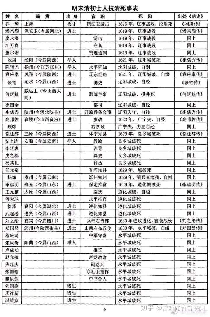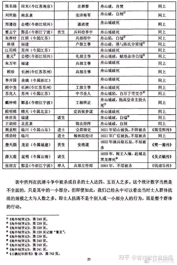 所谓「明末汉族地主集体叛国投清」是一个满遗制造的经典谣言。事实上,从北到南,整个汉族士绅群体始终坚持抗清,抵抗十分惨烈悲壮。这里贴一下《明末士人抗清死事表》。