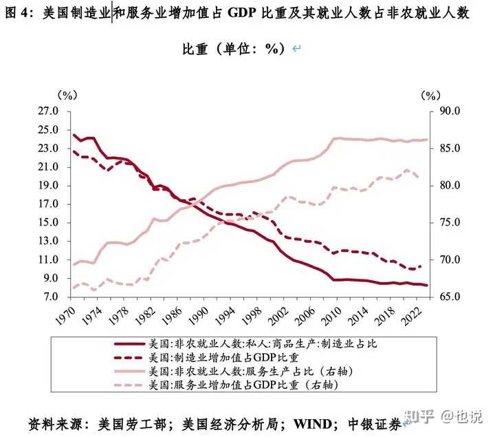 久而久之,目前美国80%以上本土人口从事服务业,实体制造业都外迁了。