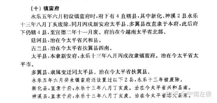 其实这也好解释,《永乐交阯总志》 书中叙事截止于永乐十七年初,而这次调整是在永乐十七年九月,所以出现这个问题是因为方志编纂完成之后才调整的区划,自然就不一样了。