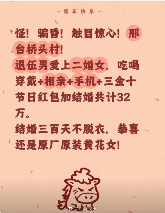 具体到邢台这个事情,我不是偏袒女性,我想说的是,凡是重男轻女的地方,就一定会存在高额的彩礼,那么必然会有人利用女性身份不走寻常路,有的是女人自己主动谋划的,那就属于诈骗;有的是女方家庭在后面推动的,那就是等于迫害自己的女儿。也有男人讲了,还是有些 「族规」 和 「教规」 的好,离婚率低,生孩子多,拿钱真办事啊!我不希望把这种事情当正面典型来讲,虽然我是男的,但是我不希望我们的女同胞过上阿富汗的生活。
