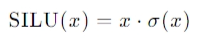 [ \text{SILU}(x) = x \cdot \sigma(x) ]